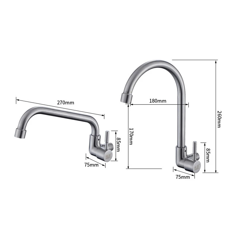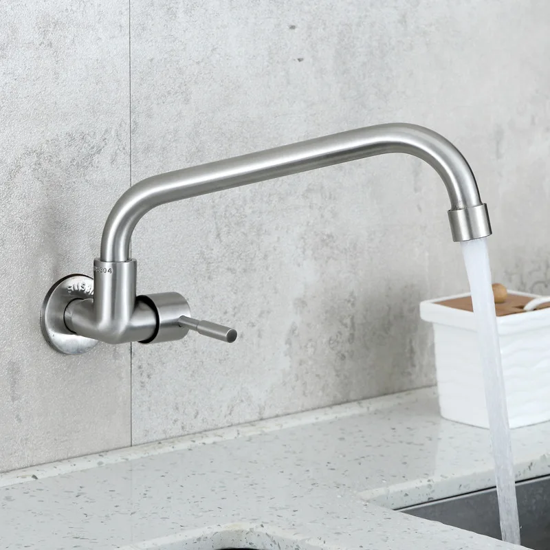 Wall Mounted Single Cold Stream Sprayer Kitchen Faucet Single Handle 304 Stainless Steel Flexible Hose Kitchen Mixer Taps